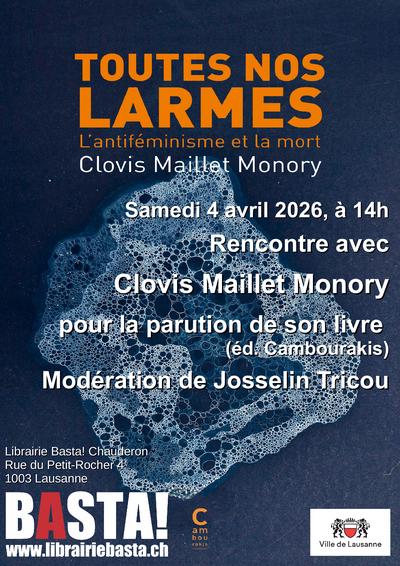 Le 4 avril à 14h rencontre avec Clovis Maillet pour Toutes nos larmes - L'antiféminisme et la mort